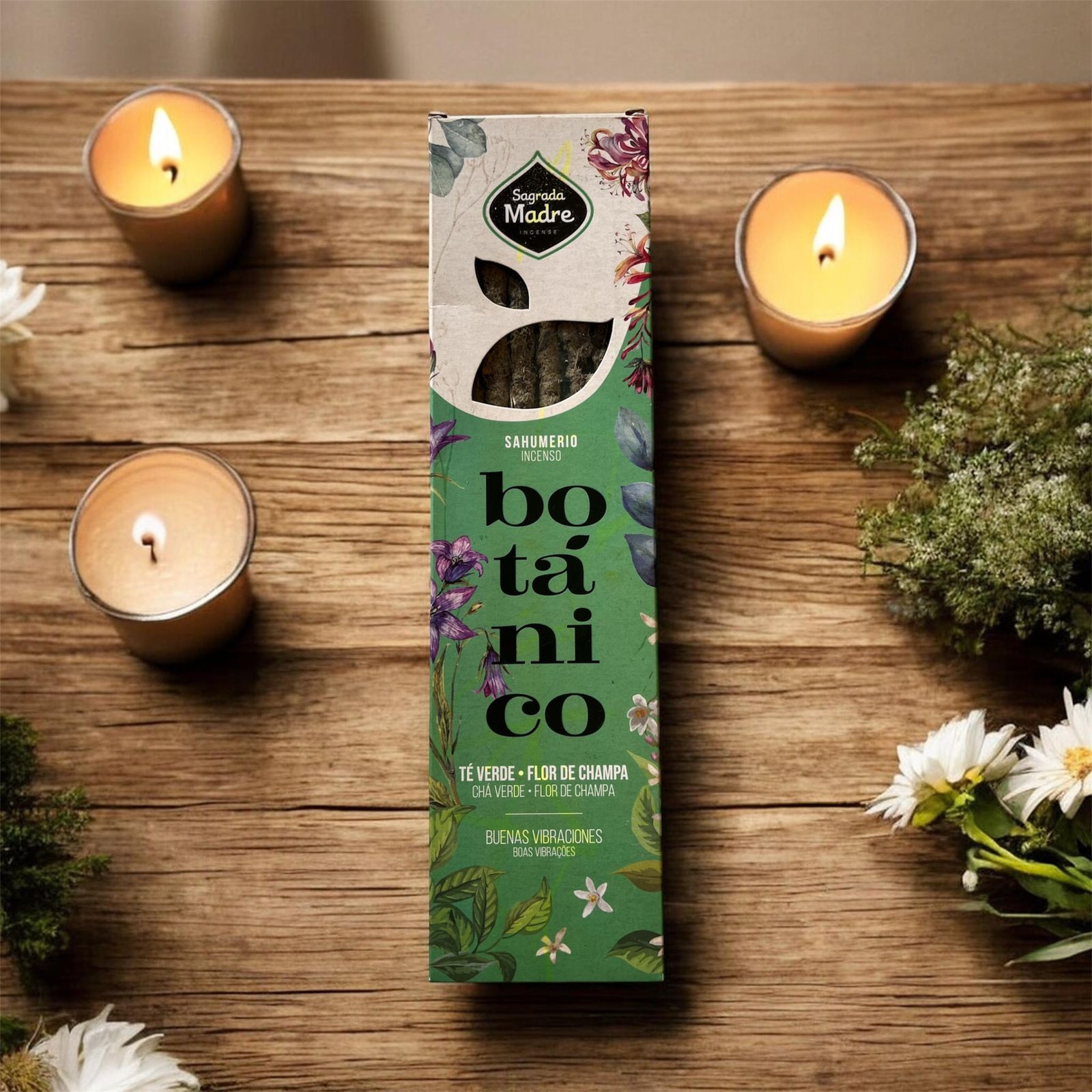 O Incenso Botânico de Chá Verde e Flor de Champa combina a leveza refrescante do chá verde com o perfume floral e envolvente da champa, criando uma atmosfera suave e equilibrada. Produzido de forma artesanal, ele libera um aroma natural e delicado que acalma, inspira e traz sensação de bem-estar imediato. Uma escolha encantadora para quem deseja perfumar o ambiente com um toque de frescor, serenidade e harmonia.